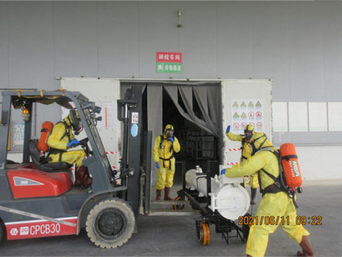 磷烷廢氣處理:磷烷生產裝置主要污染物為磷烷,為合成釜吹掃置換廢氣,初步純化抽真空廢氣和吸附再生廢氣。廢氣經各通風房內的一級干式吸附桶處理后,接入集氣總管后進入磷烷尾氣濕式噴淋塔處理,最后經25m高排氣筒達標無害排放。